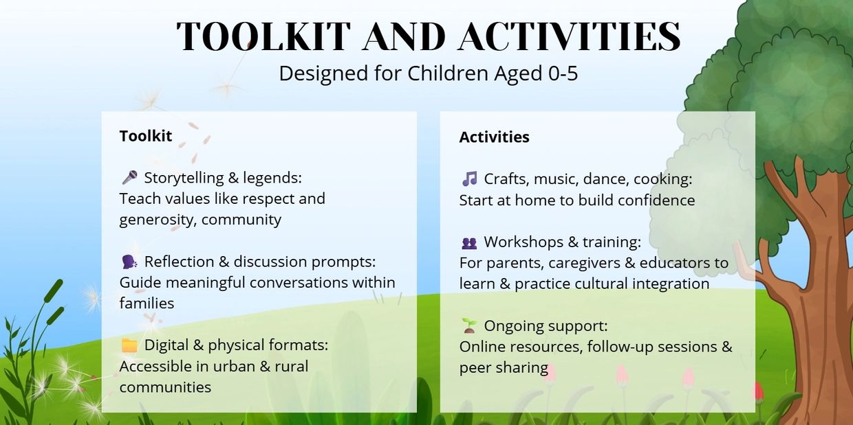 Each activity will have an age-appropriate modifier, ensuring all children 0-5 will be able to participate. The toolkit is also being developed to be “baby-safe”.